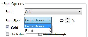 In the font options window now you have an option of selecting the size of the font to be fixed or proportional to the image. If you select the proportional option, the font size will be calculated automatically based on the value you have provided and the size of the image. So smaller images will have a smaller watermark and larger ones will have a large one.