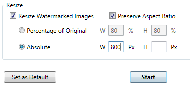 If you want to resize images to a fixed size say all photos should have width of 500 pixels then you can choose the Absolute option. Here you can specify the height or width in the absolute pixel terms and the images will resized accordingly. Again if you have chosen to preserve the aspect ratio you only need to specify either the height or the width of the image and the other dimension will be calculated automatically depending on the size of the actual image. If you do not select the preserve aspect ratio option, you need to specify both the height and width and all the images will be resized to those dimensions regardless of their actual size.