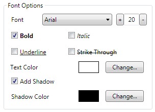 It's white text with black shadow and 50% transparency. That is the default text watermark setting in uMark and the one we recommend.