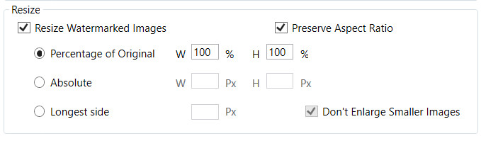 You can resize the photo in several ways. You can set the new with and height values in percentage format so images will be resized proportionately to their original pixel size. For instance, a 6000 X 4000 pixel image can be resized to 1500 X 1000 pixels by setting Width and Height at 25%.