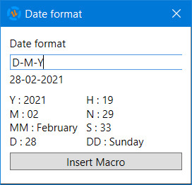 Click on Insert Selected Macro button and it will show you a window to select the format of the date.