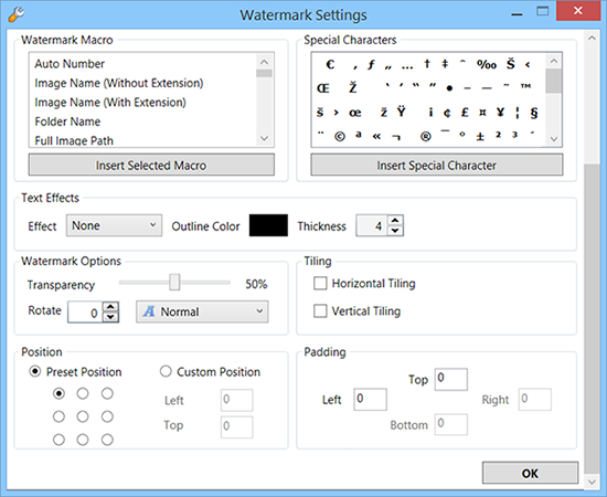 More and more users are using uMark on low resolution devices like netbooks and tablets and the fixed size of uMark's text watermark options window was causing a problem as users were not able to see the bottom of the window and hence were not able to set some of the options. That has now been fixed. Users on low resolution devices will now be able to scroll to the bottom of the text watermark options window.