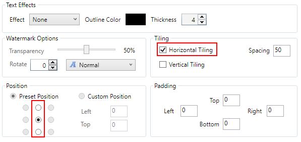 Positioning options for horizontally tiled watermarks