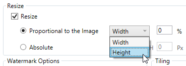 When you are using a an image or a logo for watermark, you can set it's size to be proportional as well so it adjusts as per the size of the underlying image. In order to resize the image you need to select the Resize option on the image watermark properties window. Below that there are two options - proportional and fixed. You need to select the proportional option. You can choose to resize your image watermark based on the width or height of the photo. For example, if you photo is 800x600 px and you select the logo to be sized at 25% of the width of the photo, then your logo's width will be set at 200 px and it's height will be calculated accordingly. If you set the height to be 25% then the height of the logo will be set at 150 px and its height will be calculated in proportion to the width x height ratio of the logo, so that the logo image does not get distorted.