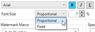 Text watermark is the most common type of watermark. When you add a new text watermark you can set it's size to be fixed or proportional. Proportional is the default choice. When you select proportional size, the height of the text is calculated automatically based on the height of the photo you want to watermark. When you select proportional size, you need to specify the font size in percentage as opposed to pixels in fixed size. 7% is the default value which we have found to be the best, but you can change the value to any number and see the result in preview. When you set this proportional size, you will see a larger font size on a a large photo and smaller font size on a smaller photo.