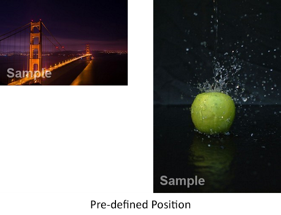 The pre-defined positions will place the watermark at relatively same spot on the image regardless of the size or orientation of the image.